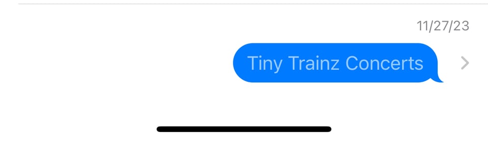 The first, our debut Tiny Train Concert, is a literal dream come true, and goes back to an idea I texted Promontory Paul on November 27, 2023:
